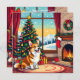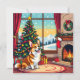 An adorable Christmas card with a festive Corgi sitting in front of the fireplace on a cold winter day. A Christmas tree decorated and a festive background. Add your own custom message or leave our cute canine Christmas poem!