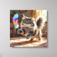 Adorable wall art featuring a sweet fluffy kitty cat having fun chasing a feather. Total cuteness.