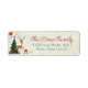 A cute christmas label with a reindeer animal deer and a holiday tree. Original Artwork by Caroline Bonne Müller