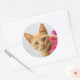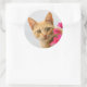 A cute red tabby kitten is watching you. classic round sticker