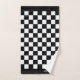 Ensemble de serviettes de bain abstrait en noir et blanc à damiers. Texte prêt à être personnalisé. Texte seulement d'un côté !