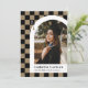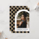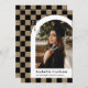 Le Modern À damiers Graduation Faire-part et Party Invitation est un moyen élégant et distinctif de célébrer les réalisations du diplômé dans votre vie. Avec son design contemporain et ses caractéristiques personnalisables, cet hôtel allie harmonieusement élégance et élégance, ce qui en fait le choix idéal pour commémorer cette occasion marquante. L'avant de la faire-part est ornée d'un arrière - plan brun et noir à damiers qui sert de toile de fond à une photo du diplômé. La photo est magnifiquement encadrée dans une arche blanche, mettant en valeur le portrait du diplômé avec sophistication. Sous l'arc, le nom et l'école du diplômé sont affichés en évidence, ajoutant une touche personnelle à la faire-part. Un petit plafond de graduation intelligemment intégré à l'arrière - plan à damiers signifie l'accomplissement du diplômé, avec leur année de graduation subtilement incorporée. Retournez la faire-part à l'arrière, où un motif assorti et amusant dans le teint doré et noir prépare le terrain pour l'invitation de la fête de remise de diplômes. Vous y trouverez tous les détails nécessaires pour participer à la célébration et honorer les réalisations du diplômé. Le design soigné et les éléments personnalisables font de ce faire-part un choix idéal pour les couples qui veulent partager leur joie et leur enthousiasme d'une manière moderne et unique. Célébrez les réalisations de votre diplômé dans votre vie avec le Moderne À damiers Graduation Faire-part et l'Invitation de la fête. Personnalisez, partagez et honorez leurs réalisations avec style et sens.