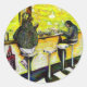 Original painting of two individuals are seated at a counter in a cozy diner. Bright yellow lighting illuminates the scene, creating a warm and inviting atmosphere. Painted by New York City, Fine Arts Artist, Gaye Elise Beda.