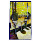 Original painting of two individuals are seated at a counter in a cozy diner. Bright yellow lighting illuminates the scene, creating a warm and inviting atmosphere. Painted by New York City, Fine Arts Artists, Gaye Elise Beda.