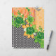 • Motifs: At the top centre, there’s a large paisley design with a yellow background filled with smaller detailed motifs. Below this, there’s a band of green foliage and flowers that transitions into a chequered pattern, followed by another band of green decorative elements.