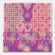 • Bottom Section: Below the central figure, there are several larger circular shapes with more intense pink and purple hues that stand out against the yellowish background. These larger shapes are placed in an irregular pattern along the bottom edge of the image.