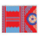 The design features a beautiful, symmetrical fractal-like design. It has intricate, lace-like patterns with a colour scheme of red, blue, and white. The symmetry and complexity of the design make it visually striking and interesting, often associated with mathematical beauty and artistic expression.