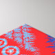 The design features a beautiful, symmetrical fractal-like design. It has intricate, lace-like patterns with a colour scheme of red, blue, and white. The symmetry and complexity of the design make it visually striking and interesting, often associated with mathematical beauty and artistic expression.