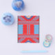 The design features a beautiful, symmetrical fractal-like design. It has intricate, lace-like patterns with a colour scheme of red, blue, and white. The symmetry and complexity of the design make it visually striking and interesting, often associated with mathematical beauty and artistic expression.