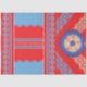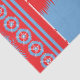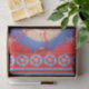 The design features a beautiful, symmetrical fractal-like design. It has intricate, lace-like patterns with a colour scheme of red, blue, and white. The symmetry and complexity of the design make it visually striking and interesting, often associated with mathematical beauty and artistic expression.