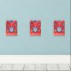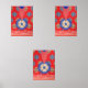 The design features a stunning fractal pattern. At the centre, there’s a circular motif in blue and white, surrounded by intricate designs in shades of orange, brown, and blue. The background is a rich red with gold star-like patterns scattered throughout. This symmetrical fractal design is visually captivating and often symbolizes infinite complexity, whether in mathematics, nature, or art.
