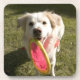 A dog with a frisbee coaster