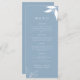 Imagine: Delicate white branch leaves dance across a dusty blue canvas, framing your personalized menu details in a modern and minimalist style. Customize it with your chosen appetizers, entrees, desserts, and beverages, making your guests' mouths water in anticipation. Add the bride and groom's names for a unique and personalized touch. This versatile menu seamlessly blends with the "A Delicate Dusty Blue Wedding Collection," ensuring a cohesive and elegant dining experience.