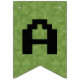 Bienvenue invités à votre partie de jeu vidéo avec la bannière de bunting avec pixel vert arrière - plan et noir lettres pixel.