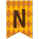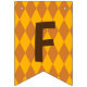 Bannière avec imprimé Jacquard couleur automne (techniquement un motif en diamant arlequin) qui dit Friendsgiving. Brown, jaune, or.