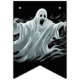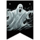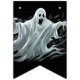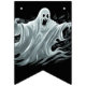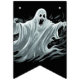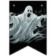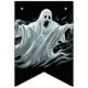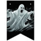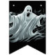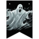 Les drapeaux de bannières sont montrés ici en noir avec un design d'impression fantôme d'Halloween effrayant. Customiser ou acheter tel quel.