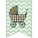 Promenez-vous avec ce joli pram stylisé décoré de rayures rose, orange, verte et bleue sur la couverture et d'un motif rappelant les blocs de bois sur le corps. Les zigzags à la menthe pastel et à la crème de l'arrière - plan accentuent la poussette aux couleurs vives. Customisez le message sur la bannière avec le genre de votre petit futur ou un message de votre choix pour créer une décoration de fête vraiment unique pour votre baby shower. Cela peut facilement être changé entre "garçon", "fille" et "bébé", et si vous avez des jumeaux ou d'autres multiples, cliquez simplement sur le bouton "Customiser" pour plus d'options. N'oubliez pas de consulter la collection complète de poussettes pour bébés pour plus de cadeaux et de produits pour un baby shower ou le petit de votre vie.