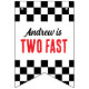 Cette bannière de bunting présente un design de voiture de course rouge, noir et blanc pour un 2 ans, avec le populaire dicton "trop rapide". Personnalisez-le en ajoutant des photos personnalisées avec le nom et l'âge de votre enfant. Une bannière ludique et colorée, parfaite pour une fête d'anniversaire sur le thème de la voiture de course !