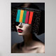 All rights reserved © Angelandspot a woman with a TV head in a retro style with the colourful static bars AI generated art