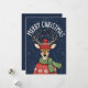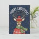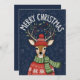 Merry Christmas Deer Illustration With Antlers, Red Sweater, Green Scarf, Holiday Theme Card