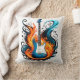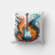 A fiery blue guitar surrounded by swirling flames throw pillow