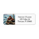 A return address label with an impasto ai art showing a fisherman on the ocean done in an impasto oil style.