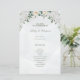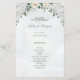 This wedding program card has a soft, elegant style with a pastel colour palette dominated by shades of green and white.