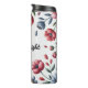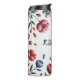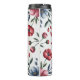 This delicate floral illustration features a border of stylized flowers in shades of red and blue, with some loose petals. The large blooms and green leaves create a beautiful frame around a blank centre. The art has a soft, romantic, and charming feel with a gentle watercolor style and a clean, white background.