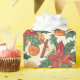 This image depicts a beautiful pattern featuring poinsettias and oranges, set against a backdrop of vibrant colours. In the centre of the image, there is a detailed painting of an orange with leaves, showcasing a range of hues including pink, red, and orange. The fruits and foliage are surrounded by intricate designs that include elements like berries, holly, and cinnamon. The overall composition evokes a festive and cozy atmosphere, perfect for the holiday season. The colour palette consists of earthy tones like browns, greens, and oranges, with accents of red and pink adding a pop of colour. The artwork is rich in detail and texture, creating a visually captivating scene.