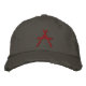 Worn looking hat with scarlet A on the front and Atheist embroidered on right rear of the hat.