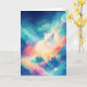 A serene white fox is curled up peacefully among glowing, pastel-coloured foliage beneath a dreamy celestial sky. The scene is bathed in soft blue, pink, and golden hues, creating a magical and ethereal atmosphere. Delicate stars twinkle above, blending seamlessly with the luminous surroundings, evoking a sense of tranquillity and wonder. This enchanting winter fox embodies a mystical, fairytale-like charm, perfect for nature and fantasy lovers.