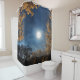 A beautiful image of a full moon shining in a night sky, framed by trees is autumn creates a shower curtain that you will love.