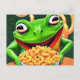 A funny frog with macaroni noodles postcard
