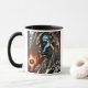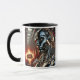 A futuristic cyborg in a burning world. mug