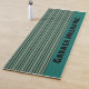 For the garage mechanic, long mat, personalize text, or text is removable, the turquoise wide centre stripe and background can be changed to any colour on this stripe design, the back in black can also be changed. Ideal to protect the floor, your craft table, or workbench.