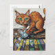 A ginger cat knocks over a glass of ice postcard