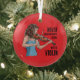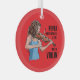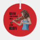 Illustration of a girl playing violin with a quote "never underestimate a girl with a violin". Personalized on the back of the ornament with a name and year. It's a great gift for someone that plays that instrument.