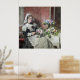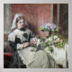 Imagine a quiet corner of an English manor, where lilac roses bloom like whispered secrets. Our off-duty housemaid, apron cast aside, arranges them with care. Sunlight spills through the window, illuminating her gentle touch. The room hums with the fragrance of vintage elegance. Frederick Smallfield captures this tender pause, a moment suspended in time. It’s a floral reverie, where everyday beauty dances with grace.