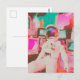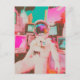 A glitch astronaut in mostly pinks and blues postcard