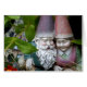 Ce mignon petit couple de gnome s'amuse dans le jardin.