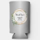 Elevate your beverage experience with this exquisitely crafted silver can cooler adorned with delicate golden rings and botanical motifs, exuding timeless elegance and sophistication.