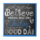 Our Good Day inspirational tile features a text design using various fonts of white on a black chalkboard look background with a pop of blue for colour with a blue matching border! Text reads "faith...trust...hope Believe, waken and say Today is going to be a GOOD DAY"!