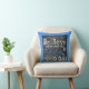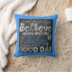 Our Good Day inspirational pillow features a text design using various fonts of white on a black chalkboard look background with a pop of blue for colour with a blue matching border! Text reads "faith...trust...hope Believe, waken and say Today is going to be a GOOD DAY"!