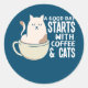 A Good Day Starts With Coffee And Cats Funny Classic Round Sticker