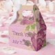 Wedding favour guest box with purple roses flowered pattern. The text on both front and back can be personalized to any message, or text is removable. The purple background can be changed to any colour.