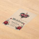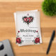 A gothic romance. An ornate, gothic-style frame surrounding a beige background. Red roses with dark green leaves are arranged around the frame, particularly in the corners. At the bottom centre, there is a decorative heart-shaped emblem with the word "LOVE" inscribed in a stylized font.