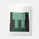 o The bottom section features another black and white geometric design similar to the one on the left but with added green accents at the bottom edge.