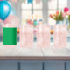 a green background with a white border can glass