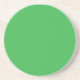 a green background with a white border coaster