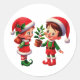 A happy boy and girl Christmas Elf Classic Round Sticker